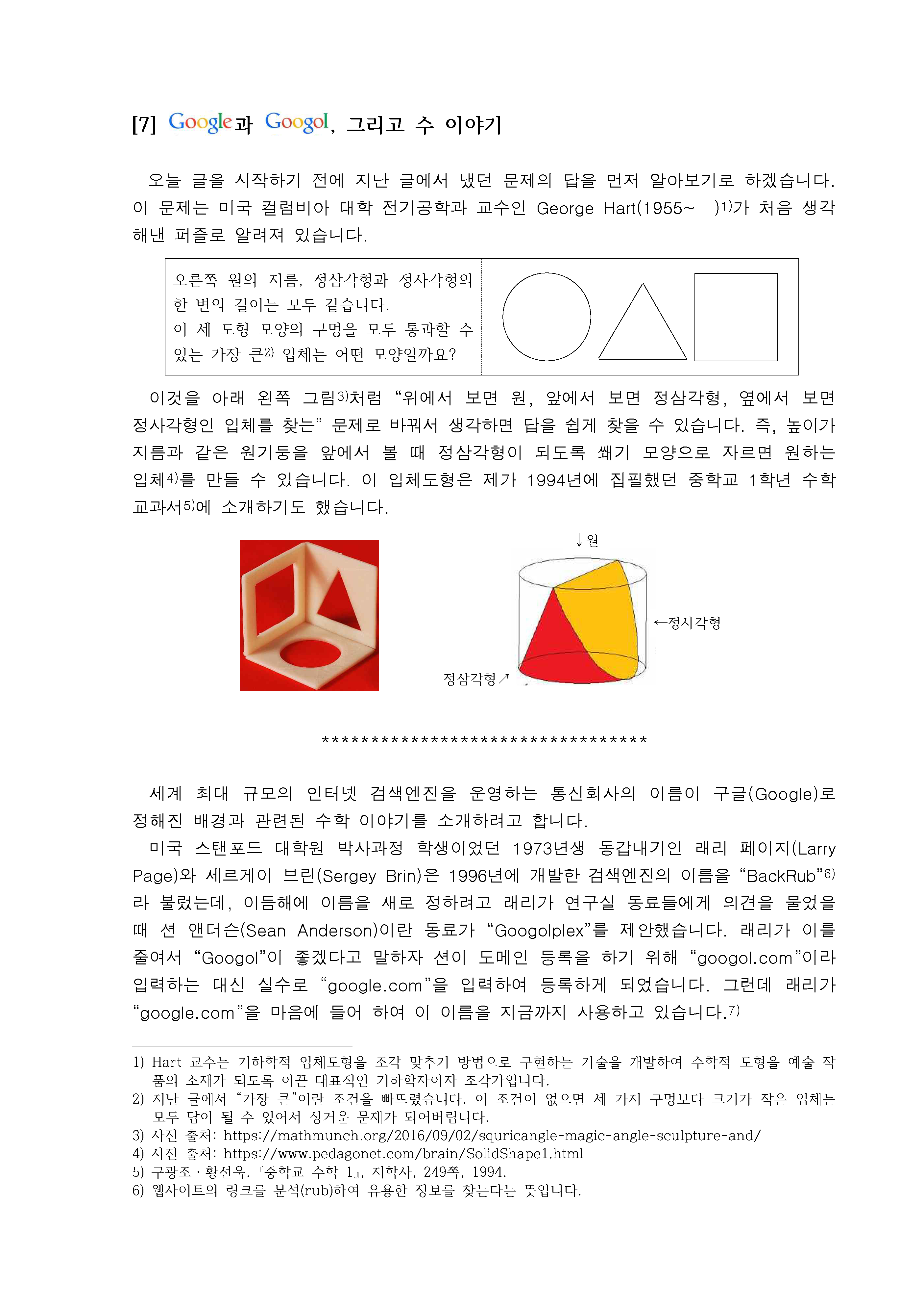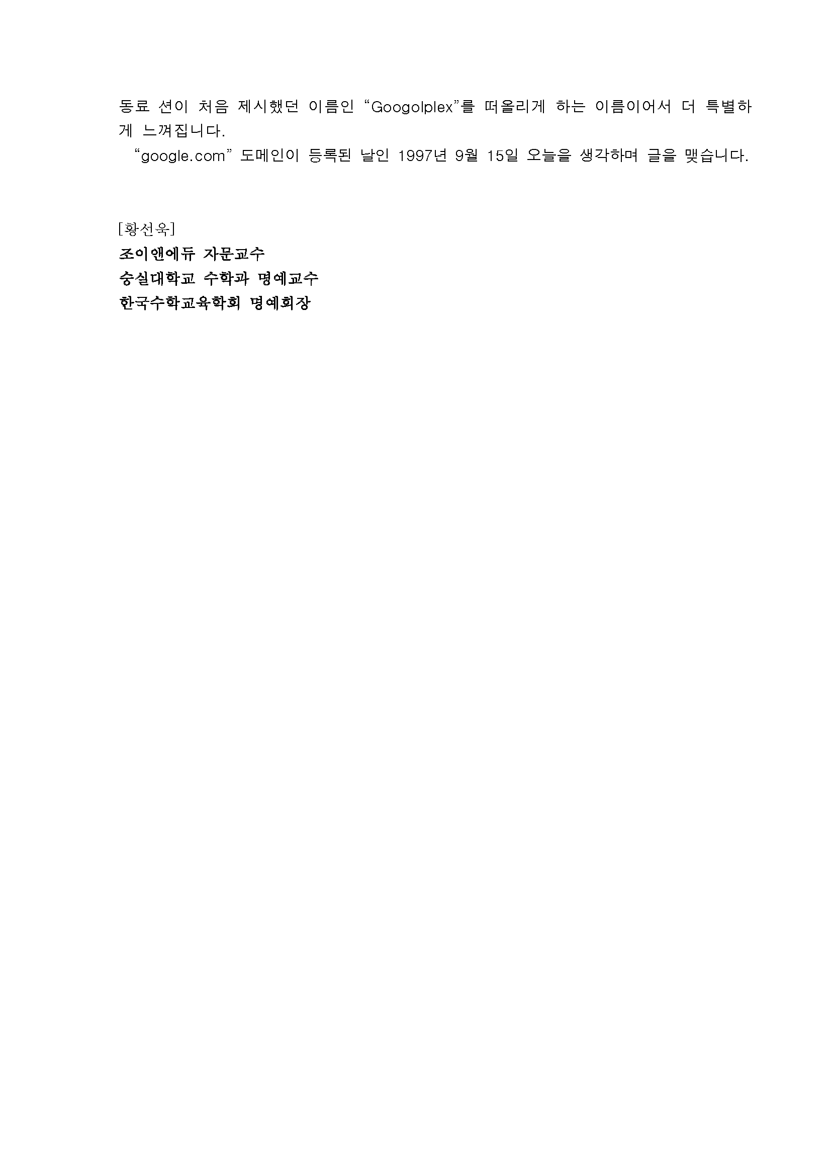 [황선욱 명예교수 수학칼럼] Google과 Googol, 그리고 수 이야기