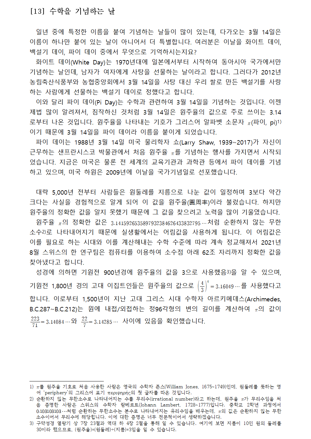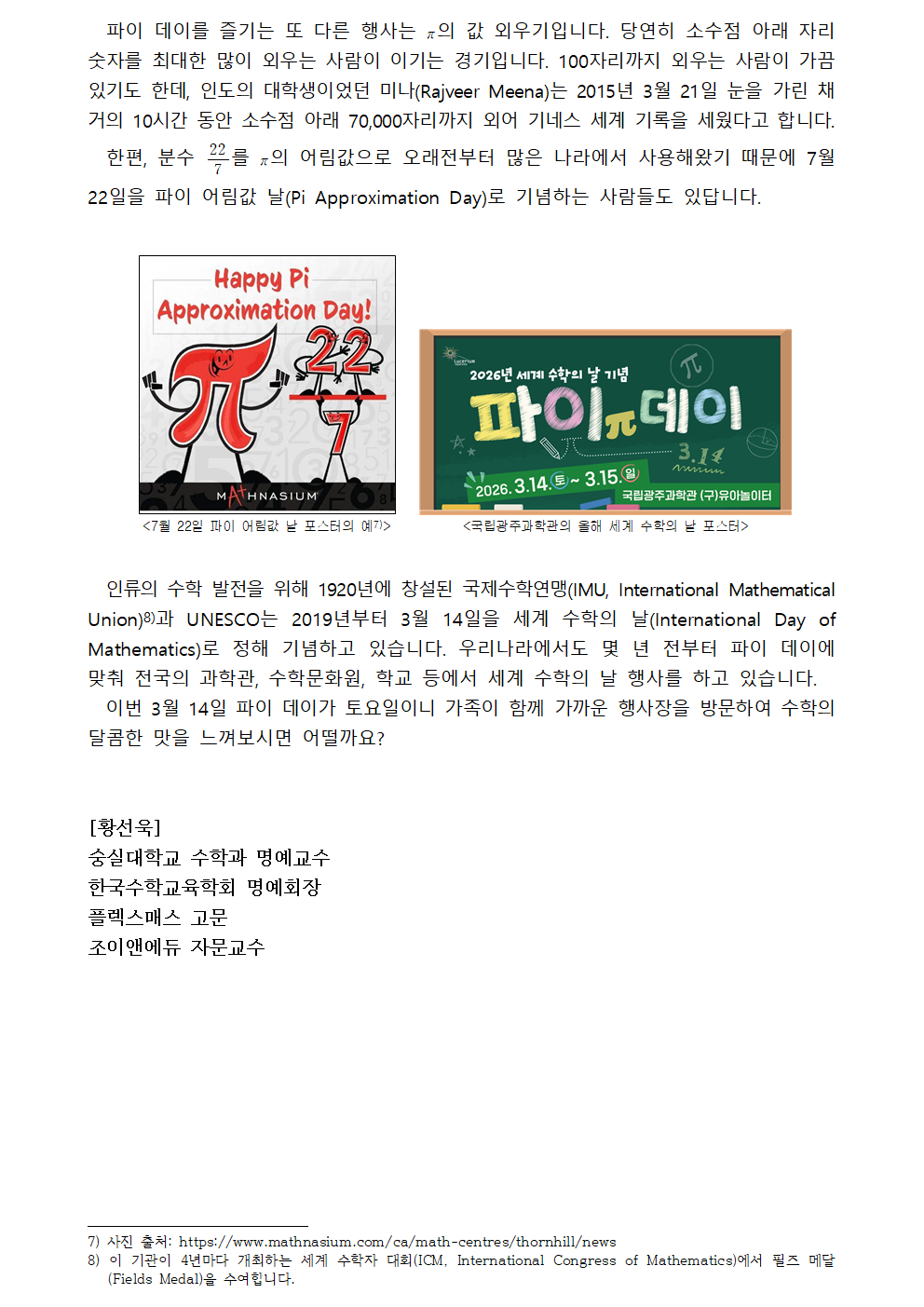 [황선욱 명예교수 수학칼럼] 수학을 기념하는 날