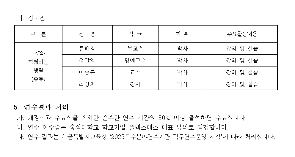 2025 "AI와 함께하는 행렬" 교사 직무연수 신청 안내