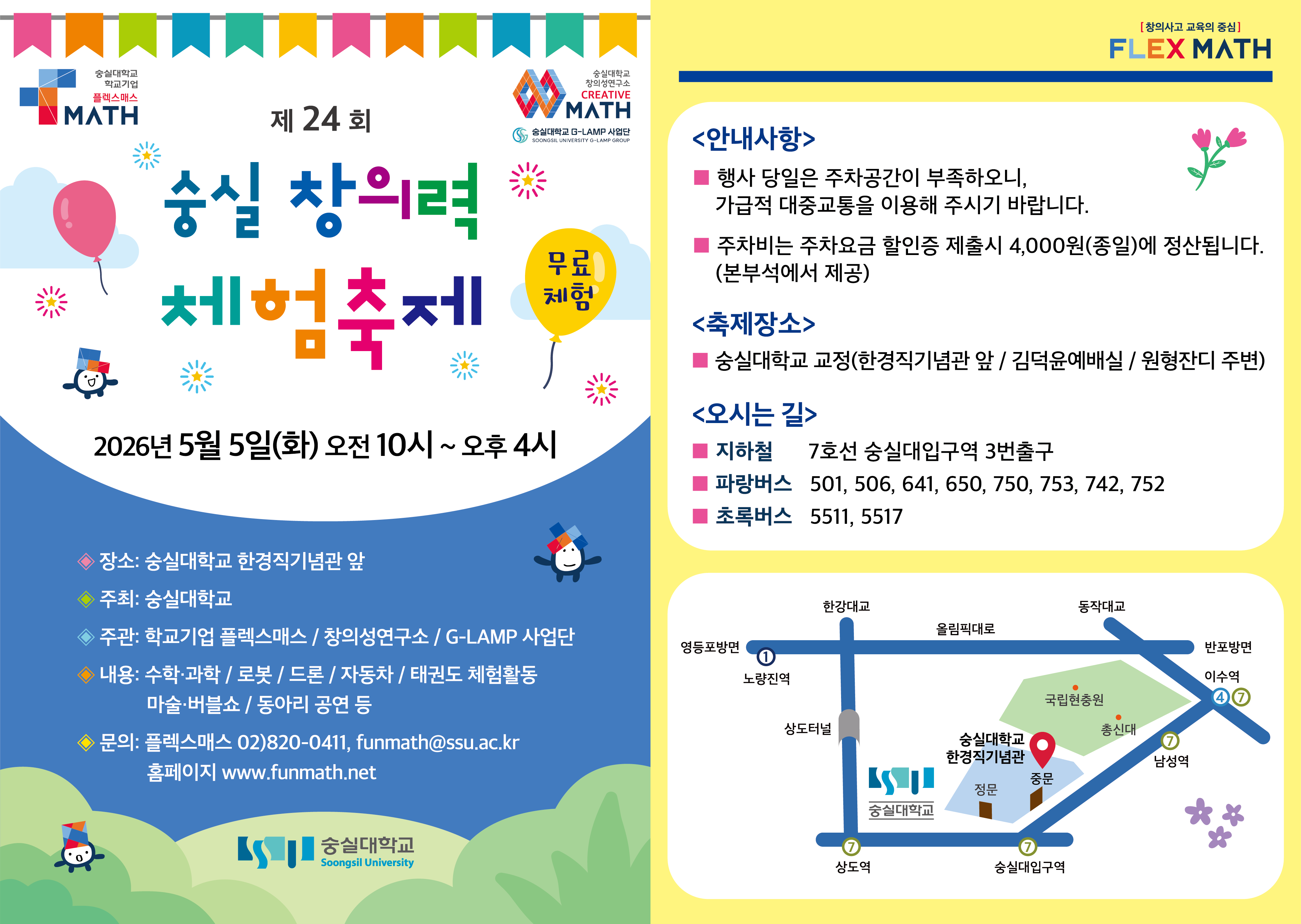 2026년 5월 5일(화) 어린이날에 “제24회 숭실 창의력 체험축제”를 다음과 같이 개최합니다.
