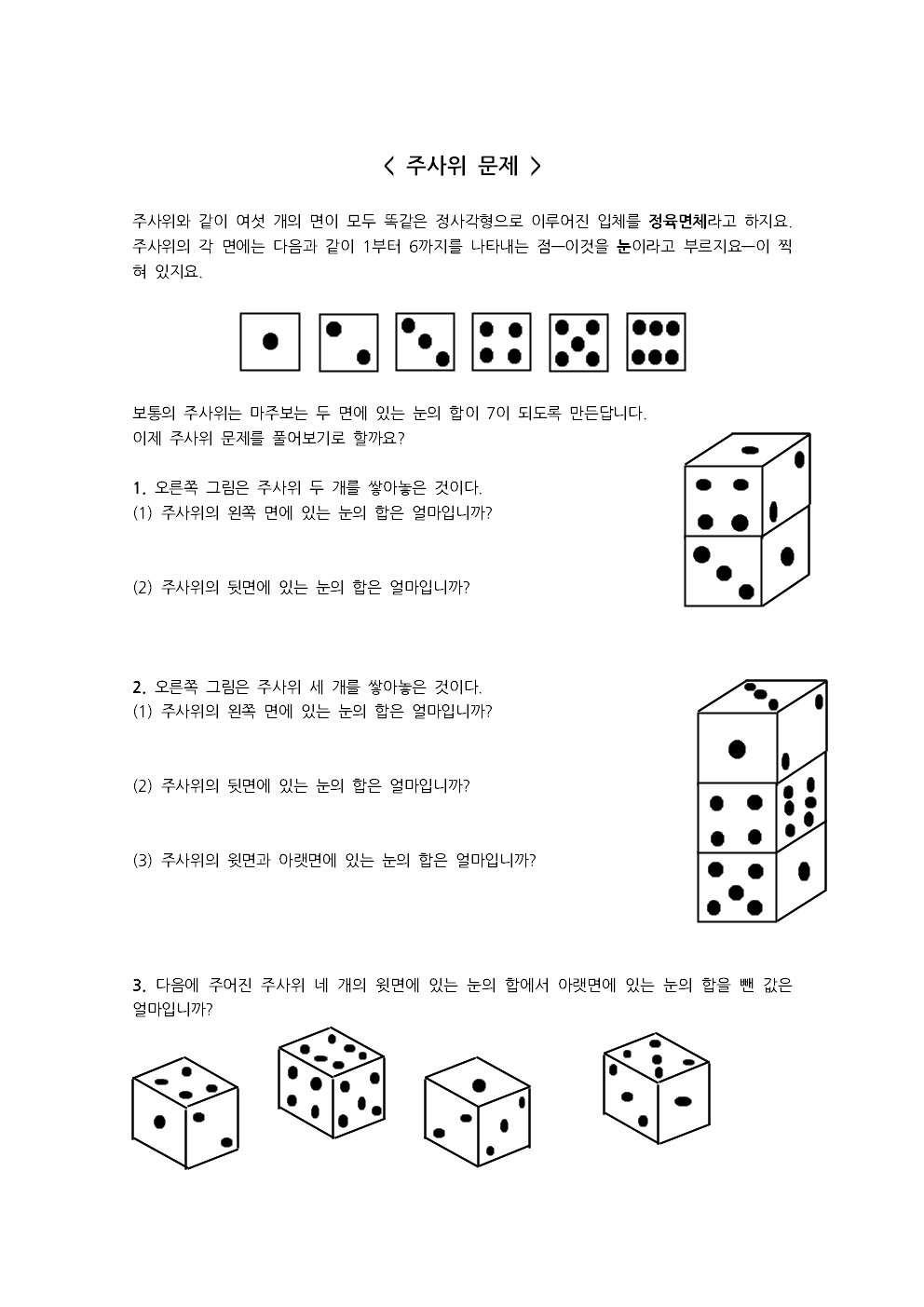 주사위 문제, 바둑돌 놀이(3학년~6학년)