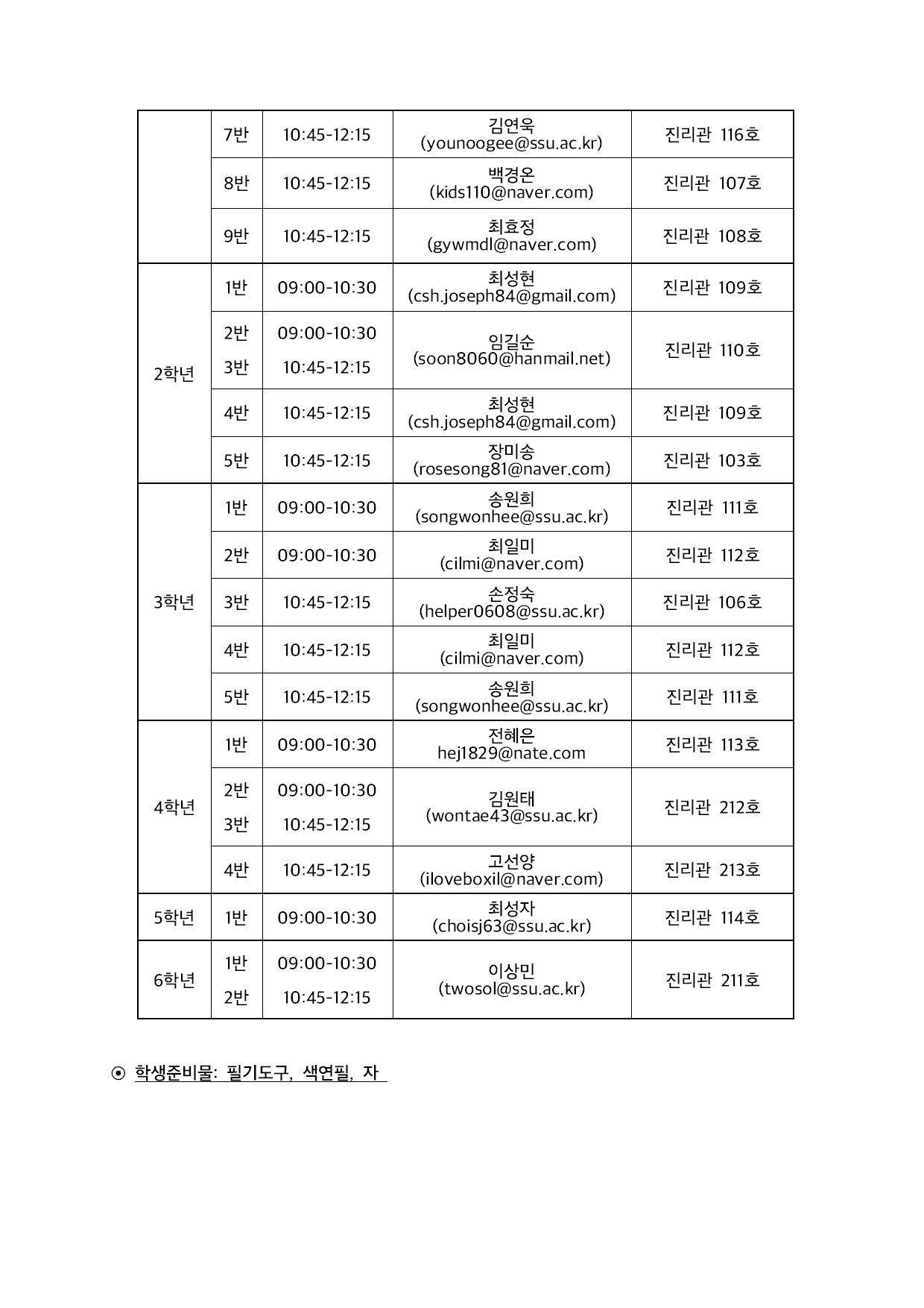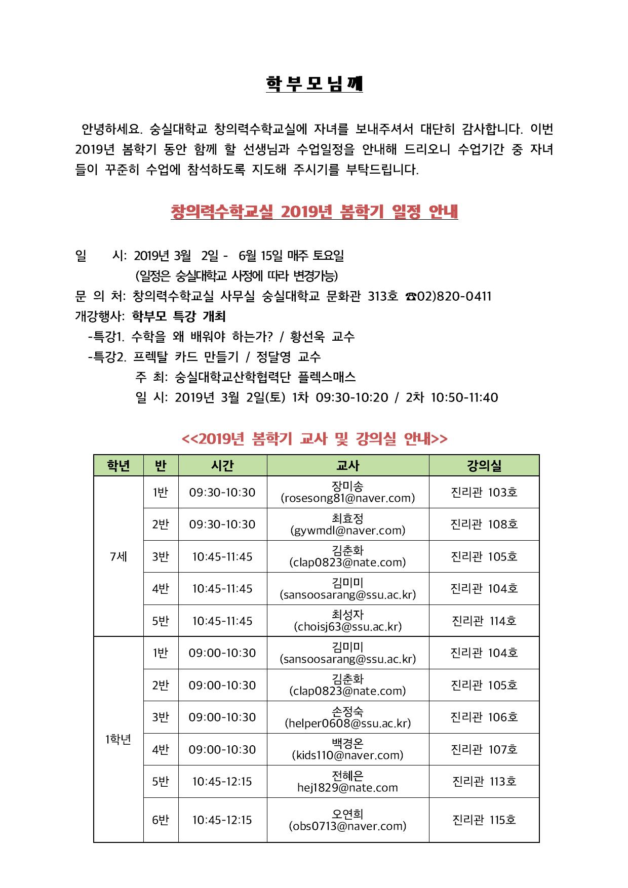 2019 봄학기 창의력수학교실 교사 및 강의실