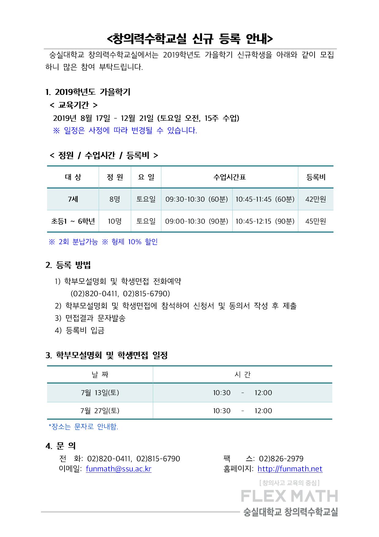 2019 가을학기 창의력수학교실 신규모집