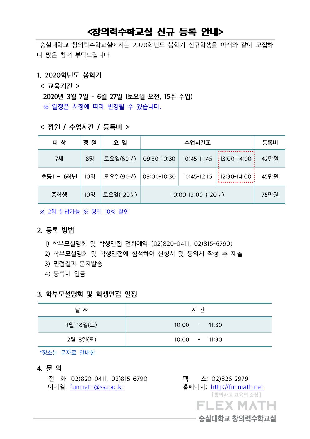 2020 봄학기 창의력수학교실 신규모집