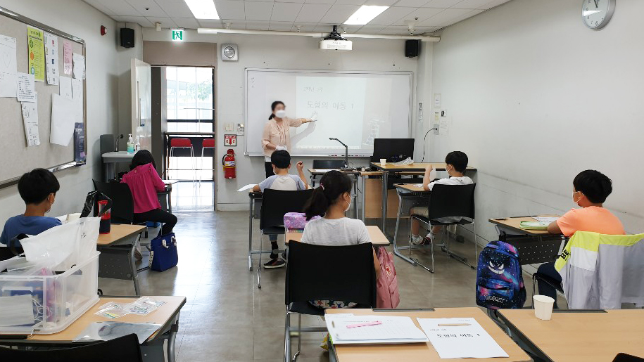 수업 중에는 창문을 통해 환기를 하고 있습니다.