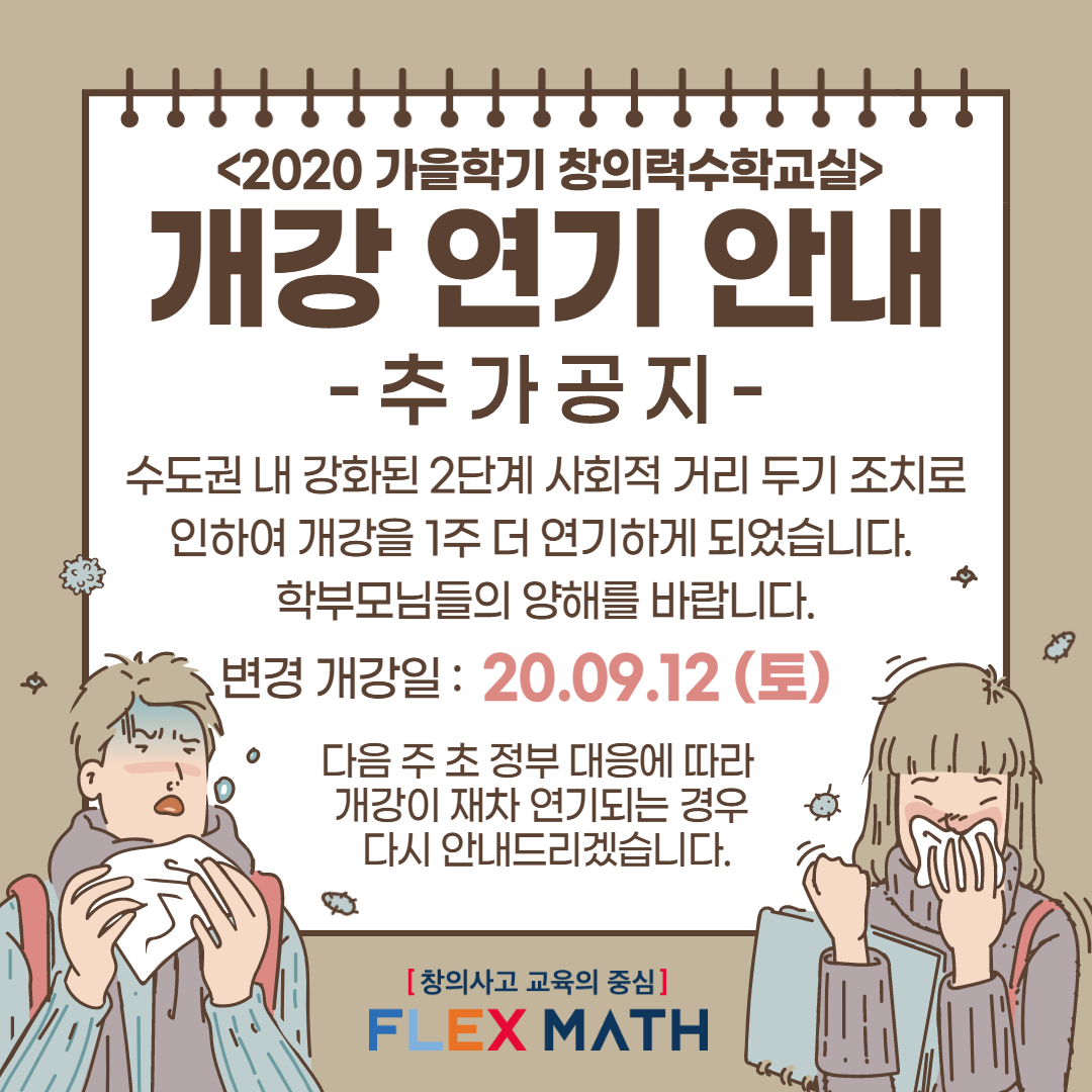 2020가을학기 창의력수학교실 2차 개강 연기 안내