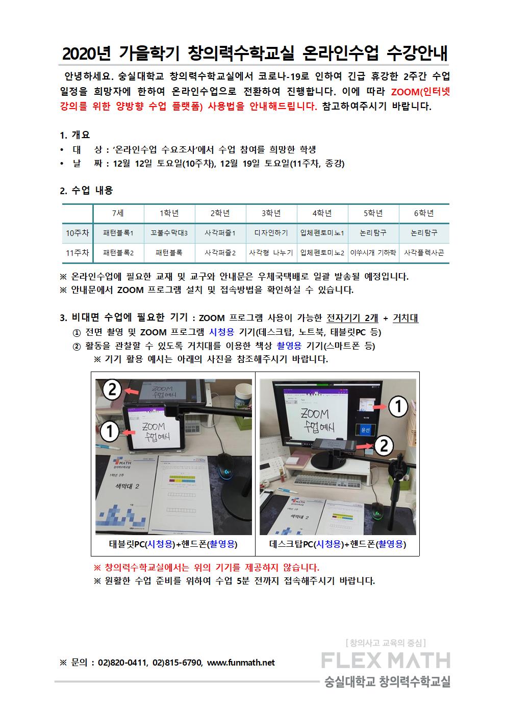 2020 가을학기 창의력수학교실 온라인수업 수강 안내