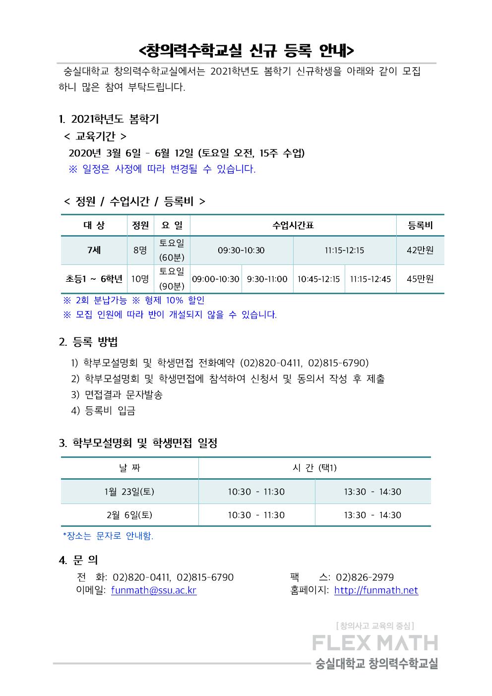 2021 봄학기 창의력수학교실 신규모집