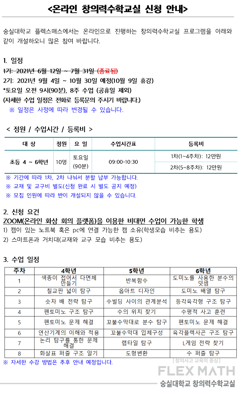 2021 온라인 창의력수학교실 신규 모집(8/13 갱신)