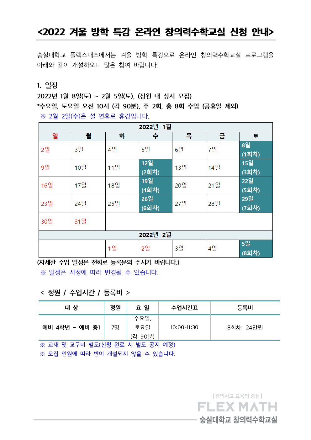 2022 겨울 방학 특강 온라인 창의력수학교실 신규 모집
