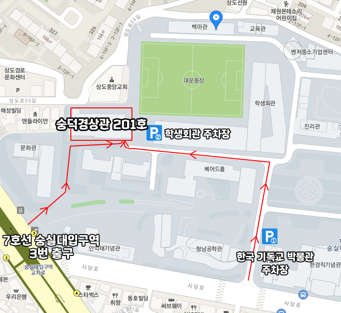 ※※※ 숭덕경상관 1층 입구는 숭실대학교 코로나-19 방역 조치로 인해 출입이 불가능하오니, 2층 입구로 출입 부탁드립니다. ※※※