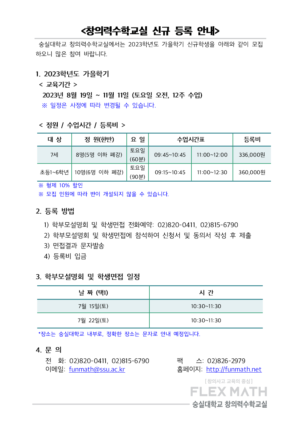 2023 가을학기 창의력수학교실 신규모집