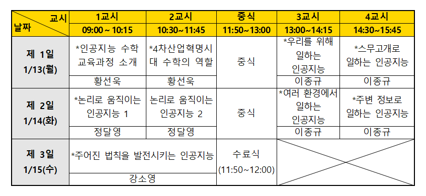 *등록 및 개강식: 2025.01.13.(월), 08:40~09:00