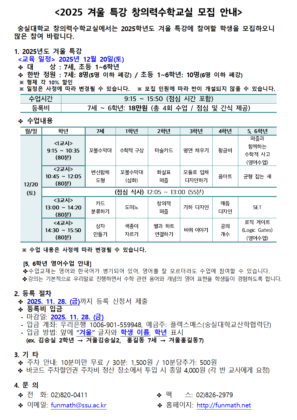 2025 겨울 특강 창의력수학교실 학생 모집 안내