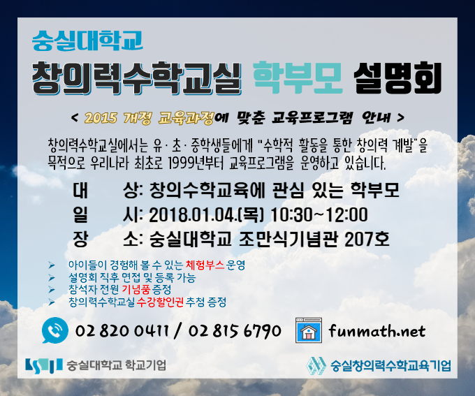 창의력수학교실 학부모 설명회 안내
