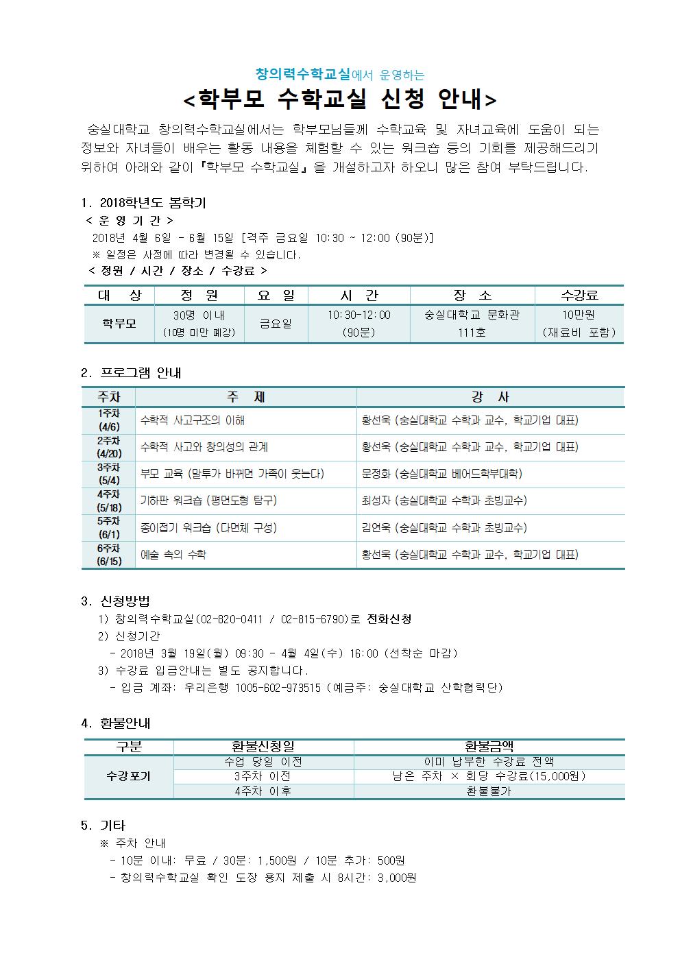 창의력수학교실에서 운영하는 <학부모 수학교실 신청 안내>