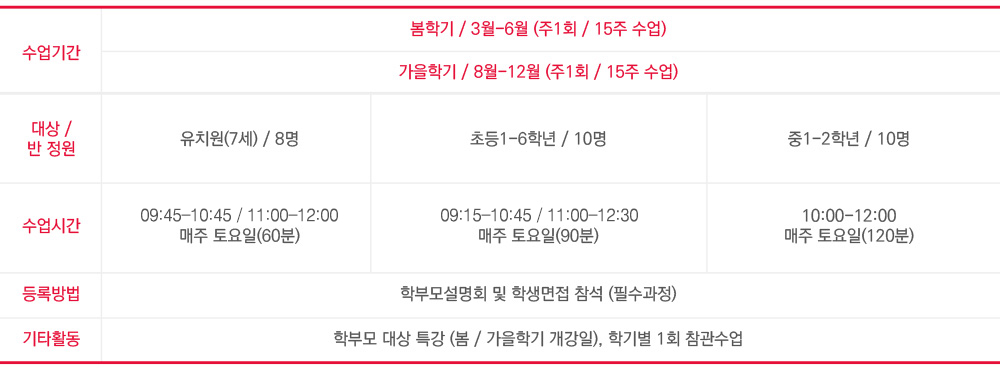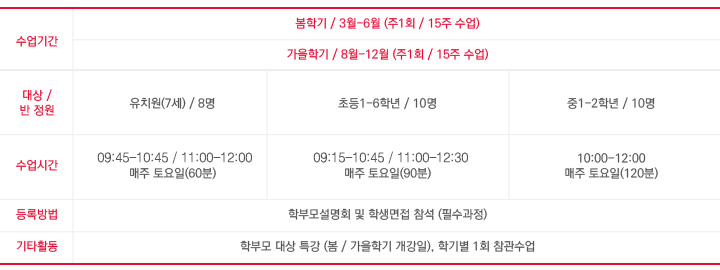 | 26 | 2024년도 봄학기 창의력수학교실 | 2024-03-02 ~ 2024-06-15 | 2023-10-28 ~ 2024-02-26 |